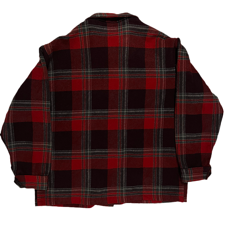 Here’s a piece that’ll make ya feel like you just stepped outta a Paul Bunyan tale. This Pendleton wool coat from the 1960s sports a bold red-and-black plaid that’s as rugged as a backwoods cabin but sharp enough for a night in town. Built tough, built warm, and built to last, this is classic outdoor Americana at its finest.