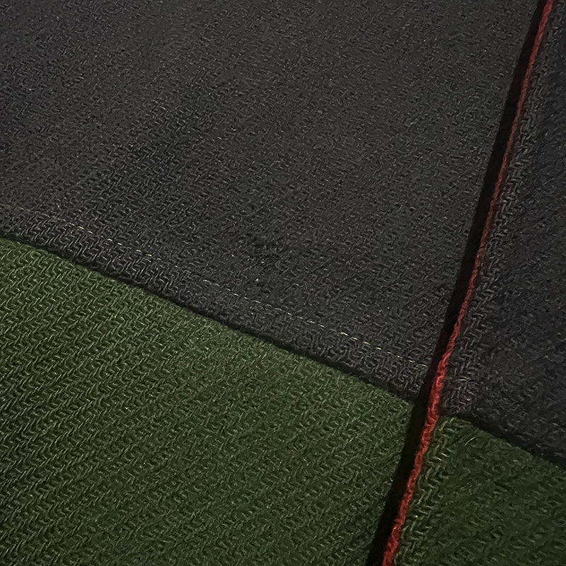 Navy + forest green colorblock with red collar lining