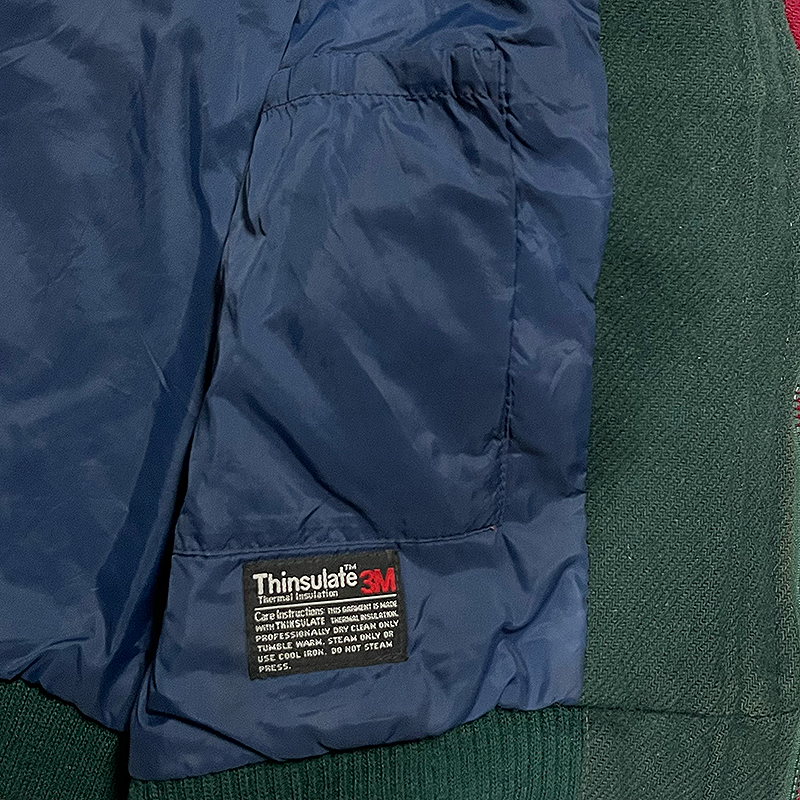 This one’s got 3M Thinsulate insulation tucked inside, plus a handy inside chest pocket for keepin’ your stash safe. Sure, there’s a stain on the lower back, and an invisible repair on the chest (see photos), but that just proves it’s been out livin’ life instead of hangin’ in a closet. Still in solid condition and ready for plenty more miles.