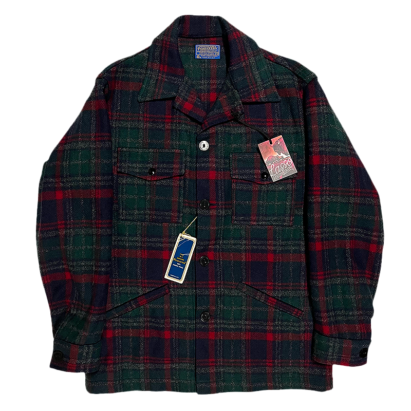 Crafted from 100% pure virgin wool, the plaid pattern is bold, rich, and timeless – deep forest greens, midnight navy, and campfire reds all woven together in that unmistakable Pendleton style. Durable, rugged, yet handsome as Sunday best. And check out those Pendleton-logo buttons – the small details that mark it as a true original.