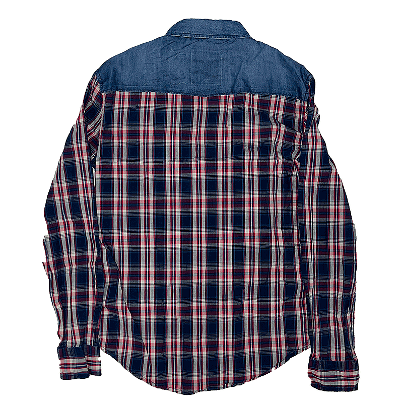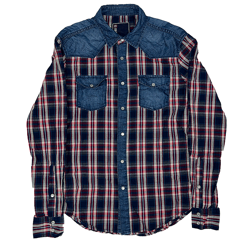 This vintage Terranova creation brings the best of both worlds: bold red and blue plaid as its base, topped off with denim (or denim-lookin’) yokes, chest pockets, and button strip. It’s like your favorite flannel and your trusty rodeo shirt had a wild night and made something beautiful.